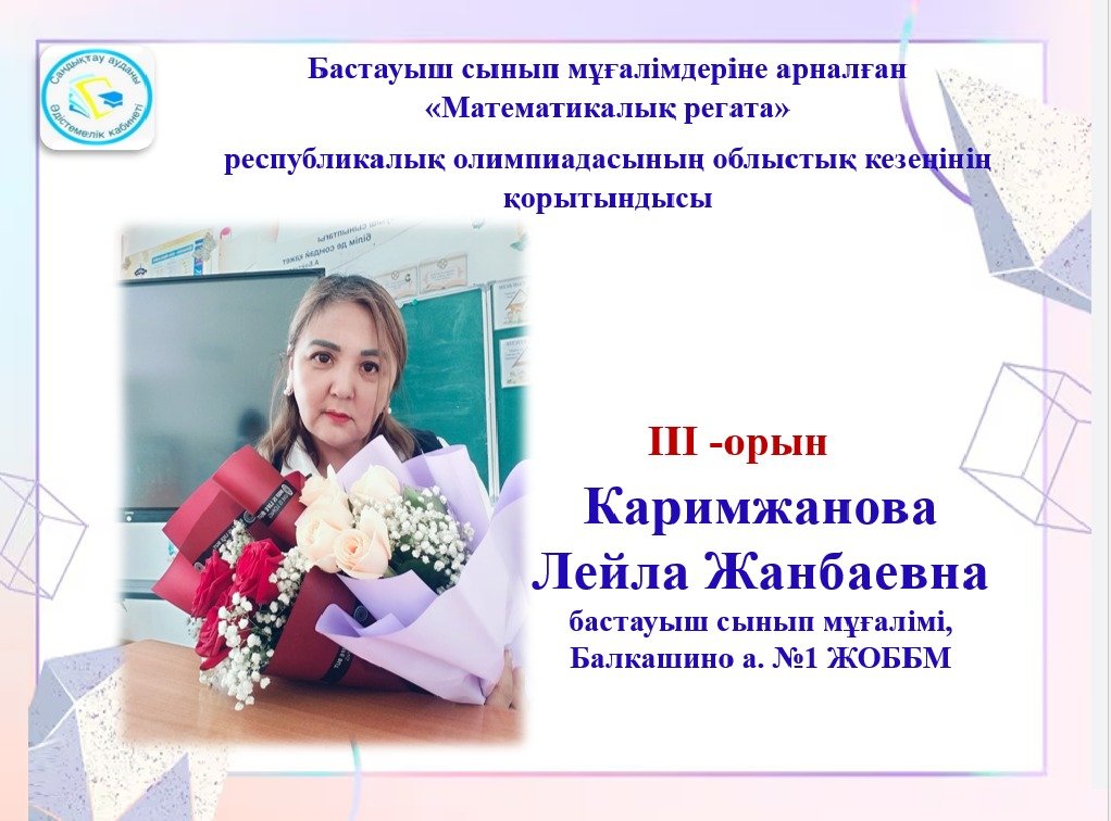 2026 жылғы 3 сәуірде Көкшетау қаласында №20 мектеп-гимназия базасында бастауыш сынып мұғалімдеріне арналған «Математикалық регата» республикалық олимпиадасының облыстық кезеңі өтті. Олимпиада қорытындысы бойынша Балкашин ауылының №1 жалпы орта білім беретін...